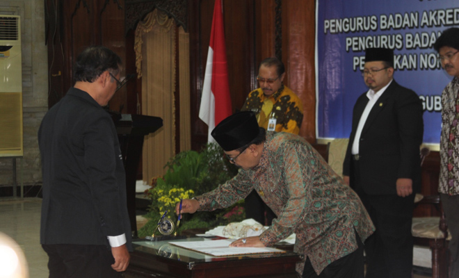 Di tempat yang sama, Pakde Karwo juga mengukuhkan melantik anggota Badan Akreditasi Sekolah/Madrasah Prov. Jatim Periode 2017-2022 serta anggota Badan Akreditasi Provinsi Pendidikan Anak Usia Dini (PAUD) dan Pendidikan Non Formal Prov. Jatim periode 2016-2021
