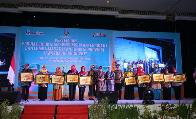 Tak hanya itu, berbagai upaya juga terus dilakukan untuk mendorong tingkat konsumsi ikan masyarakat. Seperti mendorong implementasi gemar ikan di instansi terkait, mengembangkan jejaring kerjasama, seta melakukan komunikasi tentang program Gemarikan kepada masyarakat. “Kami harap melalui lomba ini dapat menciptakan inovasi masakan ikan dan memunculkan wirausaha baru di bidang kuliner berbahan dasar ikan,” ungkap isteri Gubernur Jatim ini.