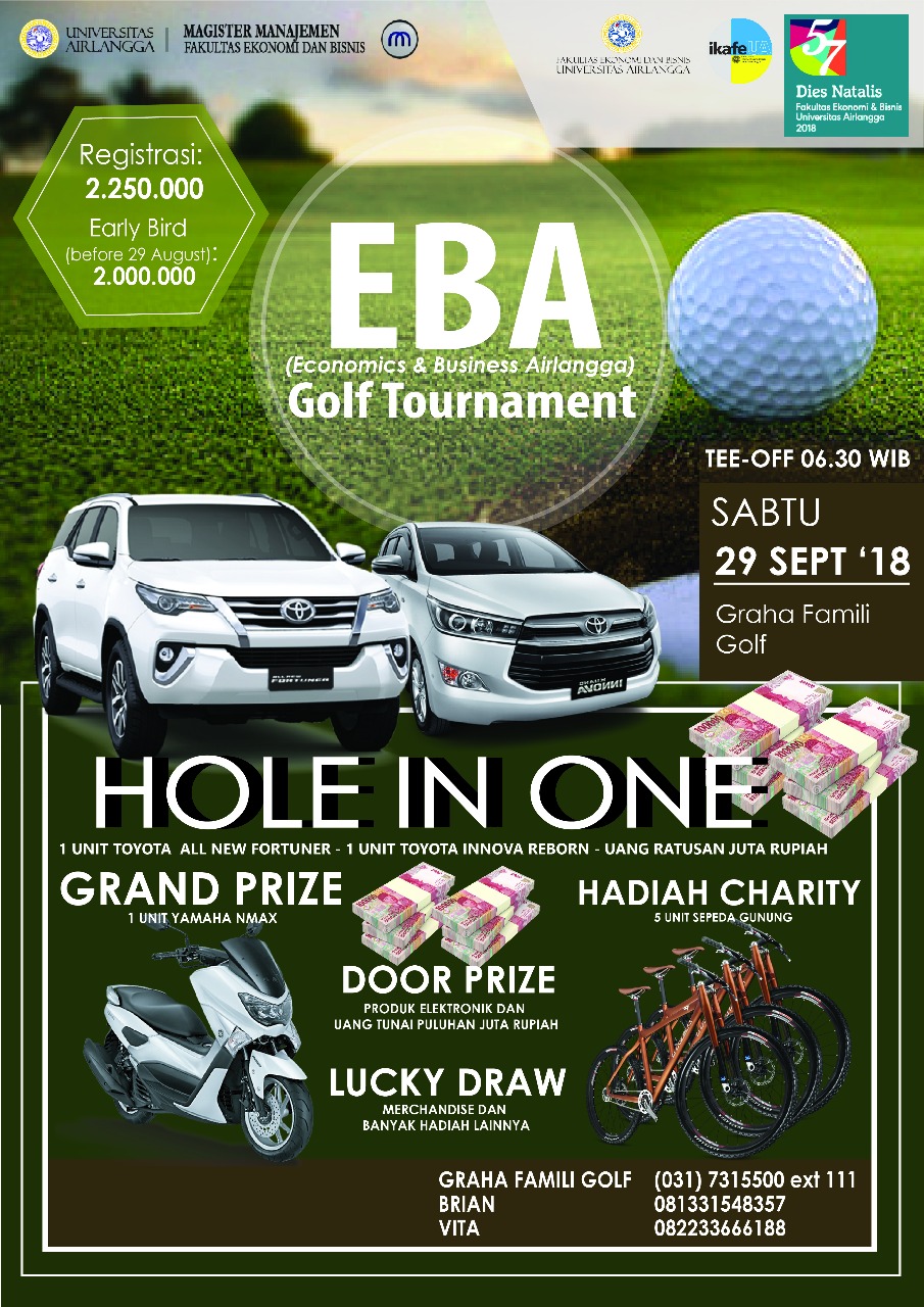 Ilustrasi Poster Economic and Bisnis Airlangga (EBA) Golf Tournament.