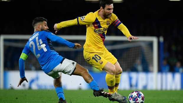 Ekspresi Lionel Messi ketika menghadapi Napoli di San Paolo, Rabu, 26 Februari 2020.